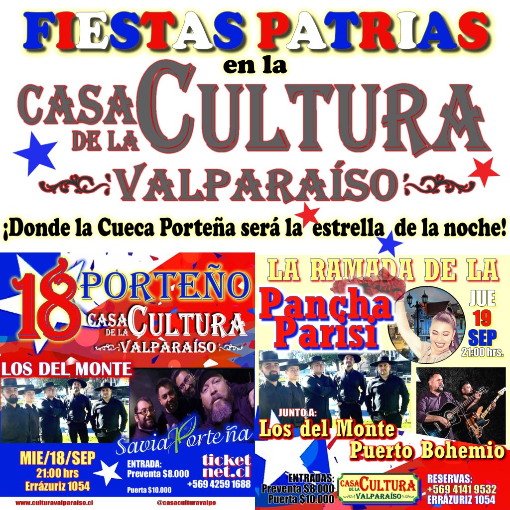· Si bien la Cueca forma parte del “playlist” dieciochero, en Valparaíso se baila el año entero y para aprender a hacerlo, se ofrecen talleres y clases en diversos espacios, entre ellos la Casa de la Cultura, bajo la dirección de Pancha Parisi.